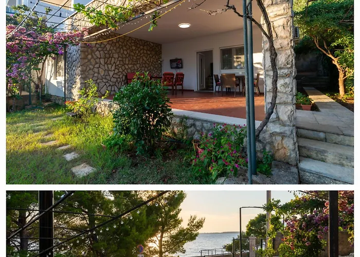 La villa Beachfront Amazing Sunset House Rovanjska se encuentra a 2 km del Puente de Maslenica e invita a los huéspedes a disfrutar de una terraza.